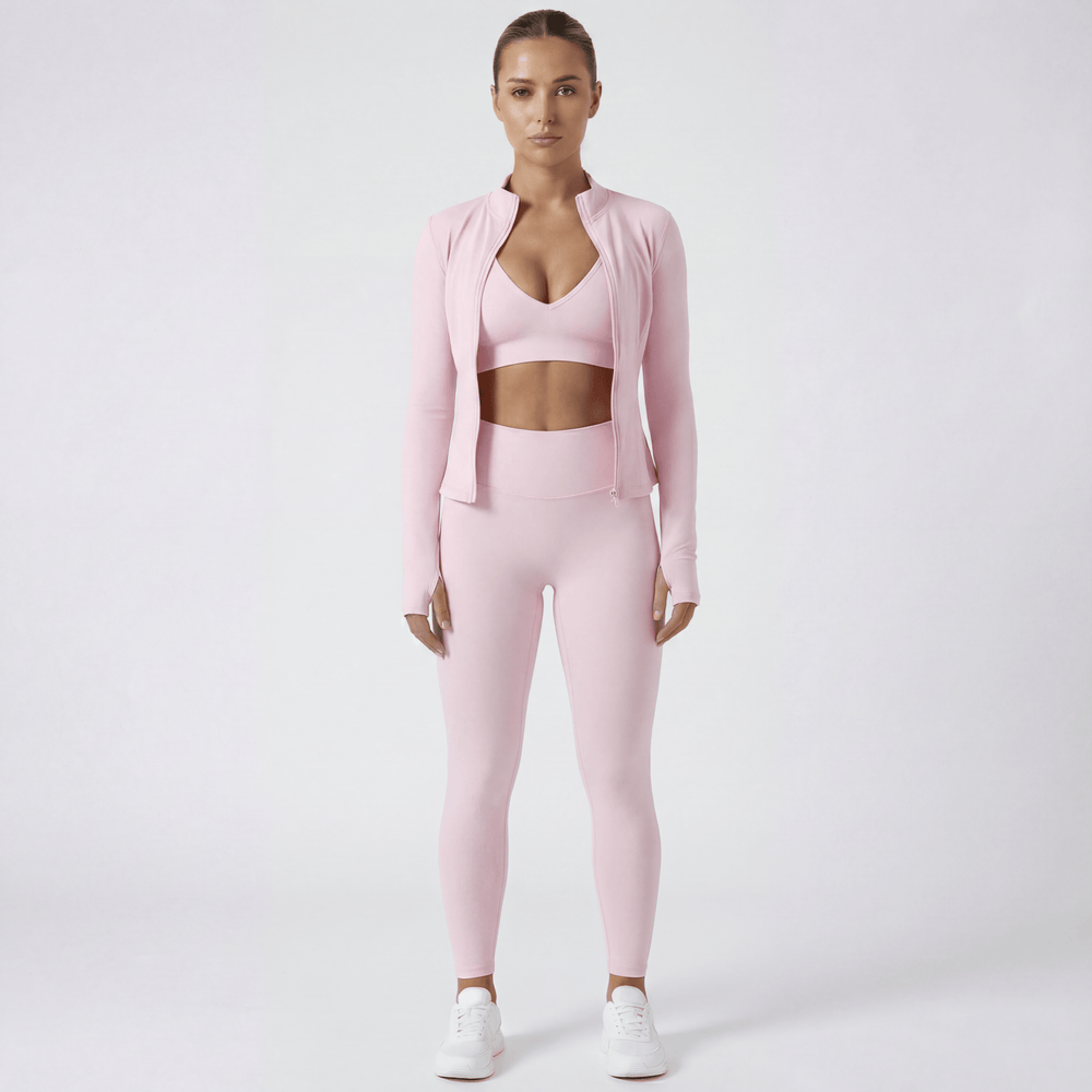 Many struggle to find activewear that looks good and feels comfortable at the same time. This remarkable three-piece set solves that dilemma, elevating your workout wardrobe effortlessly.